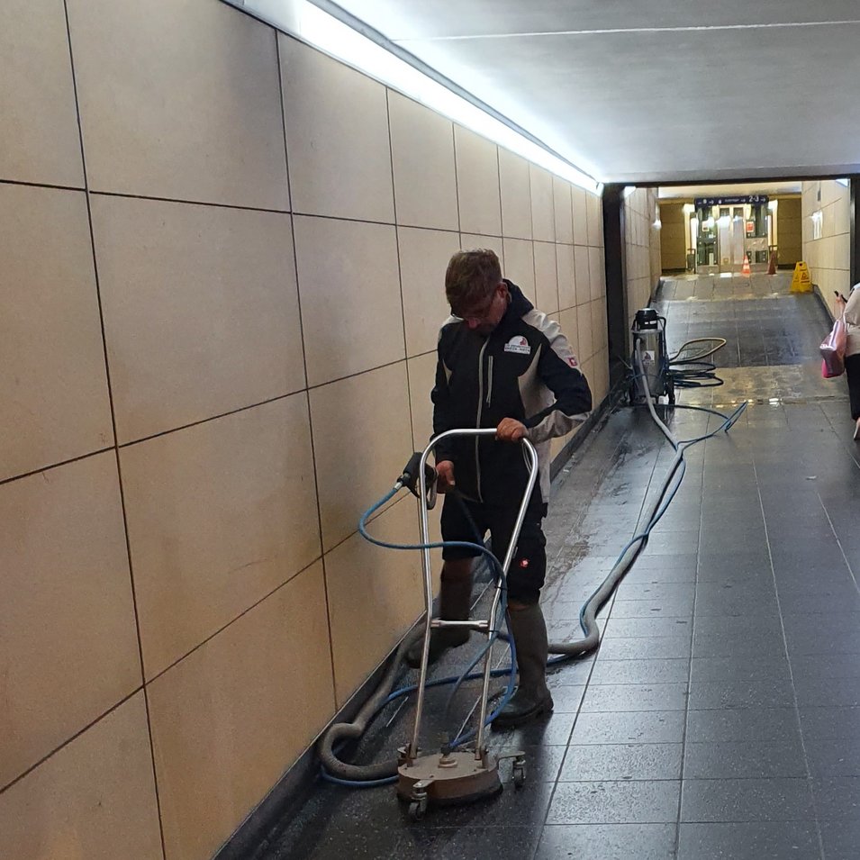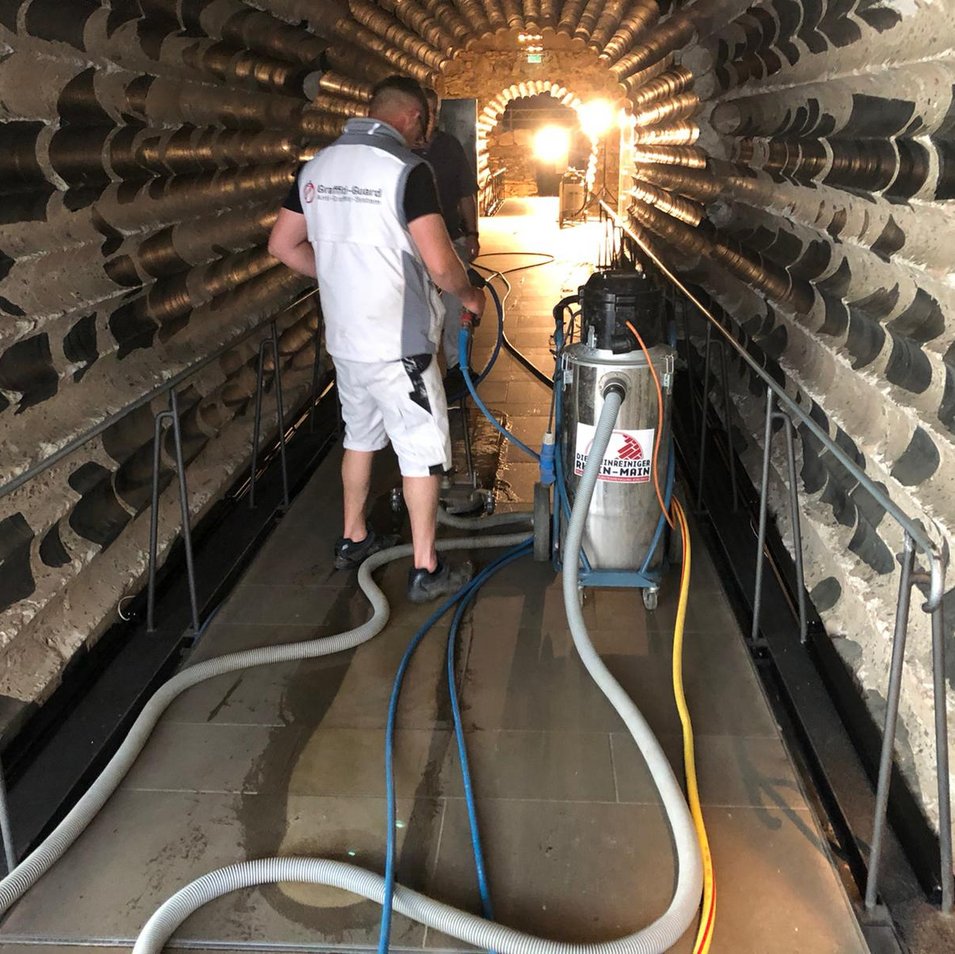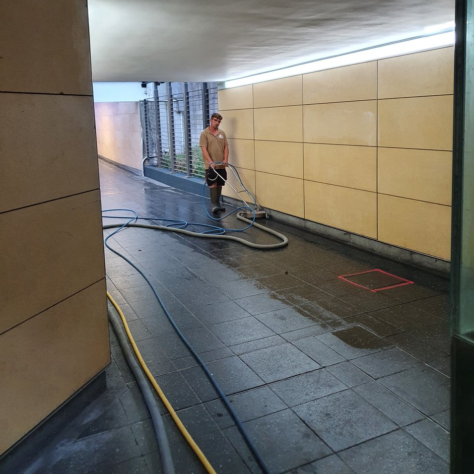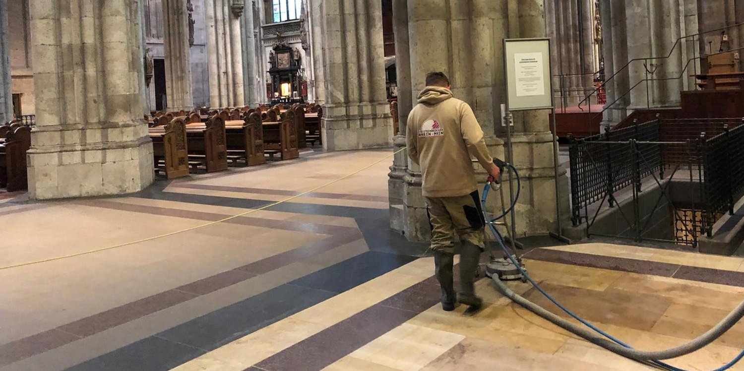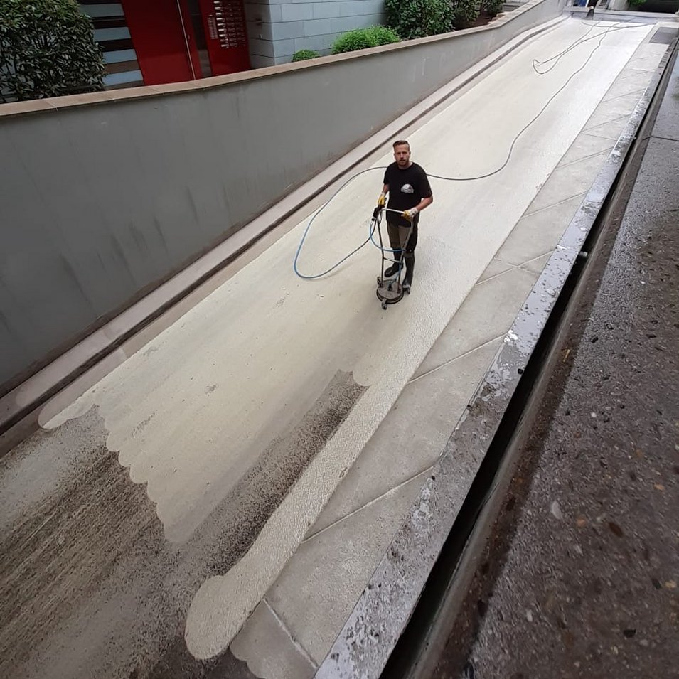 Gerade auf Baustellen kann es schnell zu hartnäckigen Zementschleierflecken auf Bodenflächen kommen. Auch hierfür kann unsere Technik eingesetzt werden!