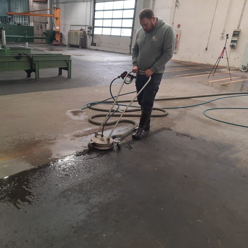 Werkstatthallen: Entfernung von Ölschlier und Verkustungen.