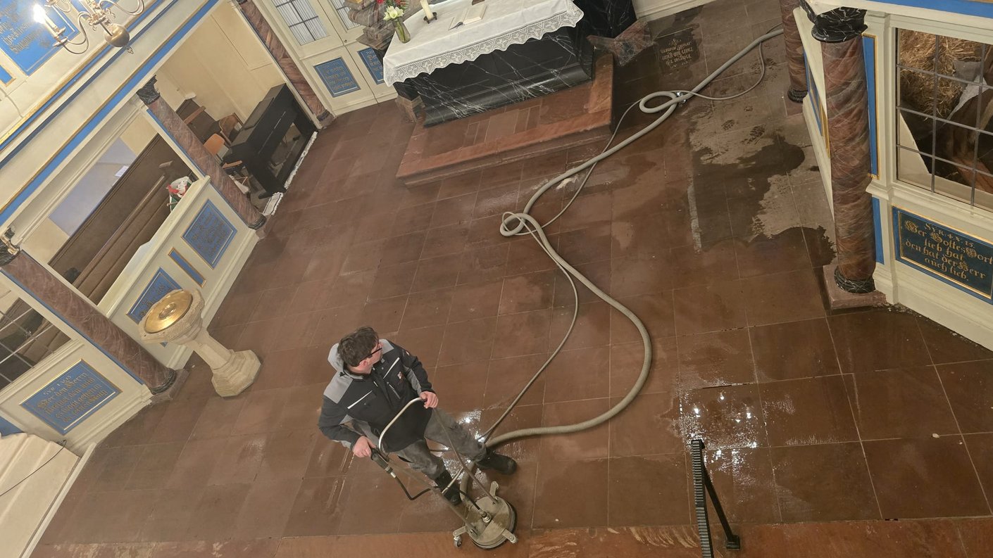 Innenreinigungen in Kirchen erfordern eine besonders kontrollierte Arbeitsweise. Es geht nicht nur um den Steinboden selbst, sondern auch um: