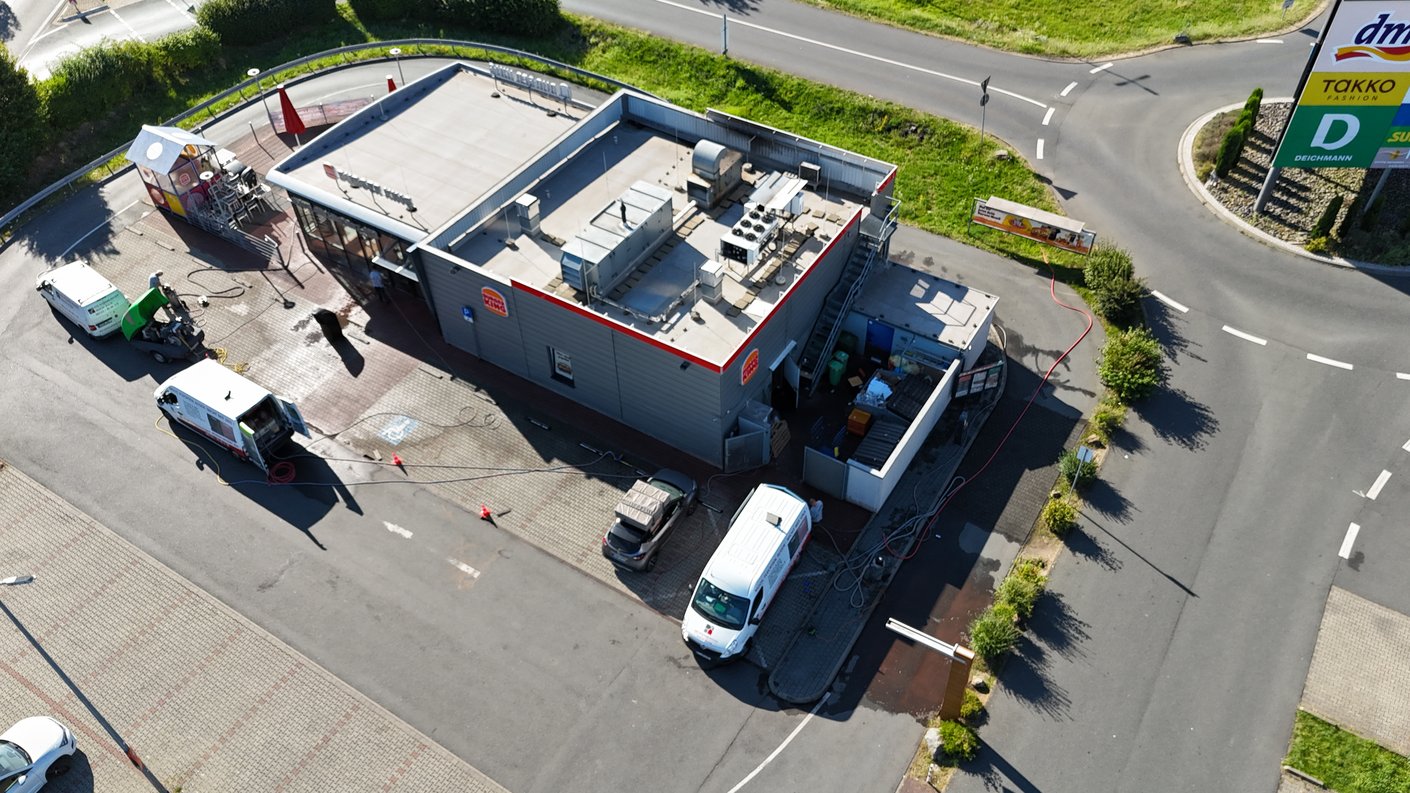 Gerade bei stark frequentierten Filialen setzen sich Kaugummis und Schmutz tief in die Oberfläche und Fugen. Zusätzlich erschweren fettige Rückstände und typische Laufwege eine gründliche Reinigung – oft auf Flächen, die schnell wieder sicher begehbar sein müssen.